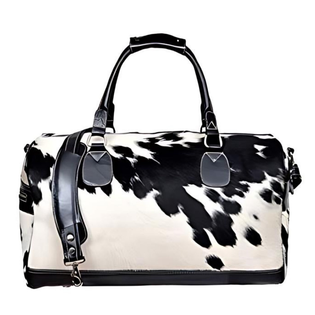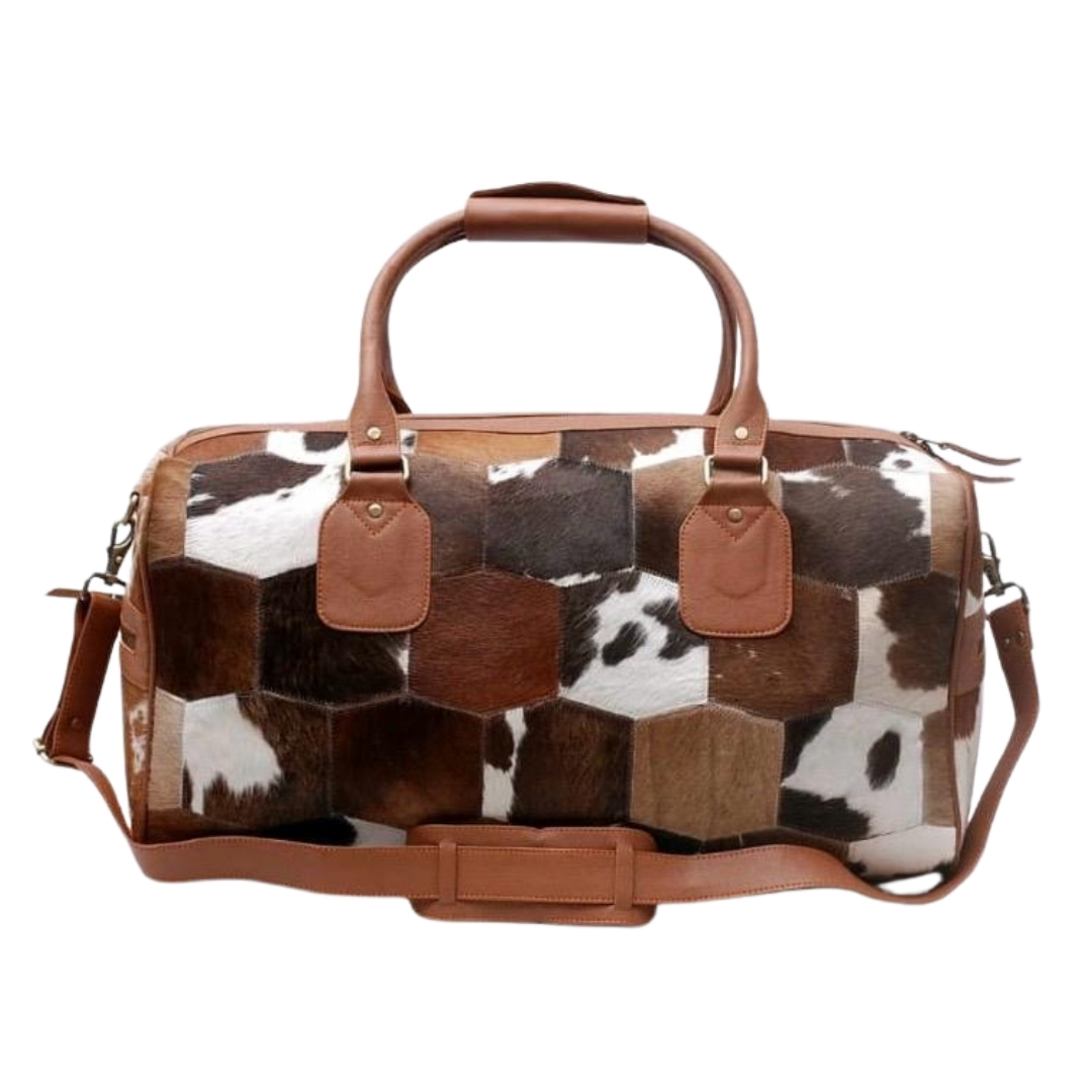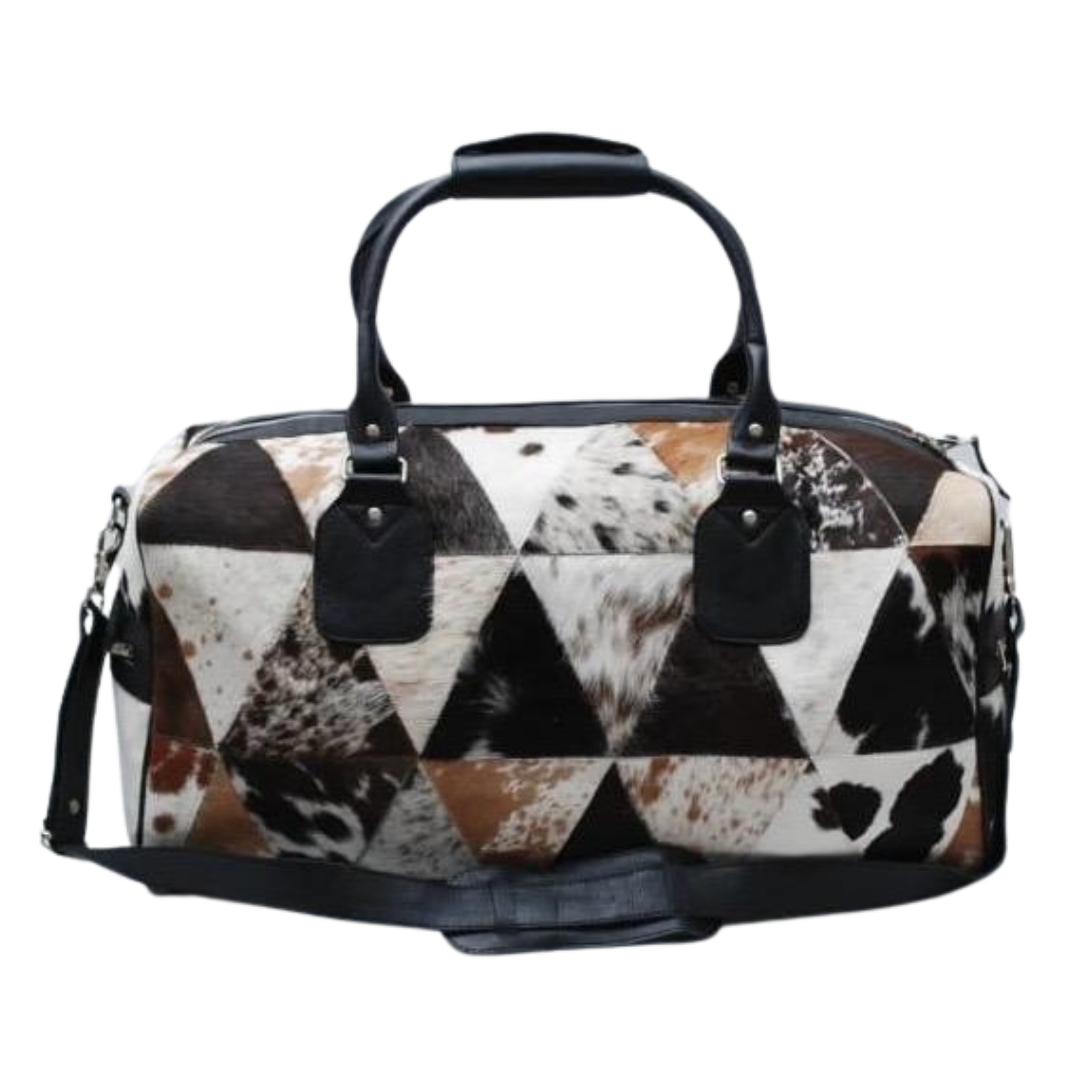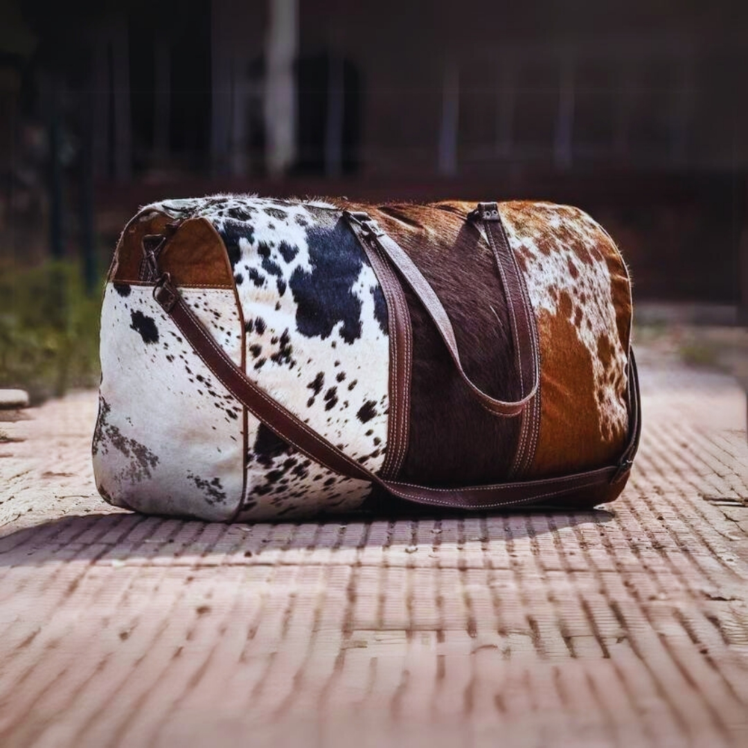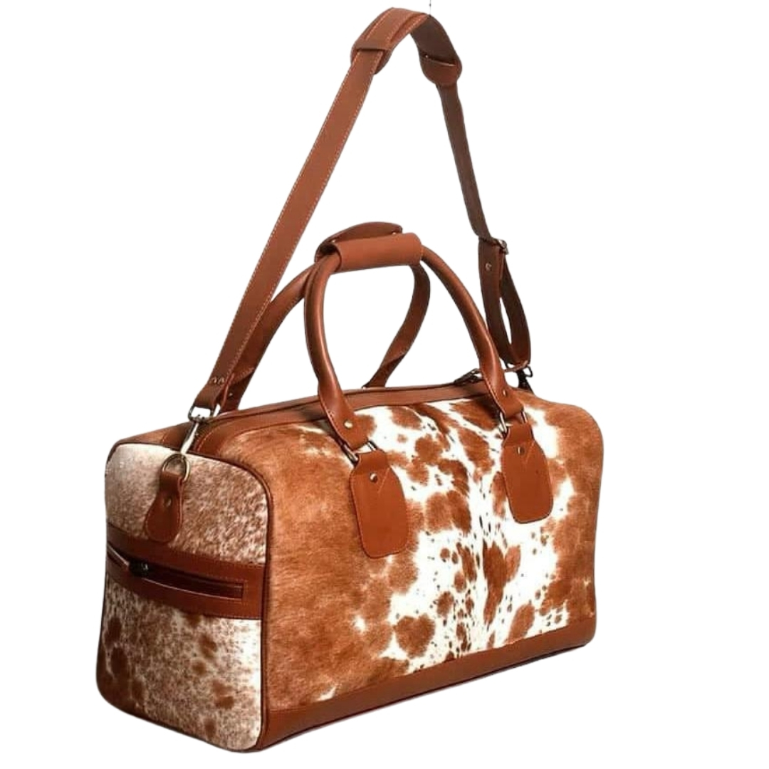Discover the blend of rustic charm and modern elegance with our Premium Cowhide Hair-On Travel Bags. Each piece, priced between $47 - $50 at wholesale rates, showcases the unique patterns and textures of genuine cowhide, making every bag one-of-a-kind.