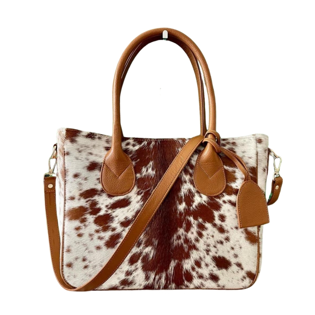 - Genuine Cowhide: The natural hair-on cowhide showcases unique patterns, making every bag a one-of-a-kind accessory.