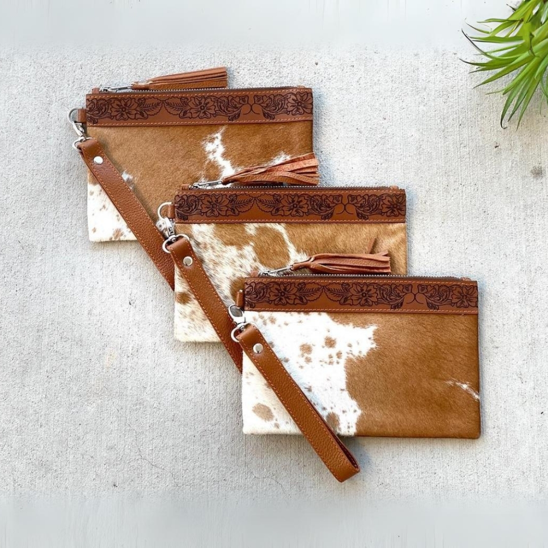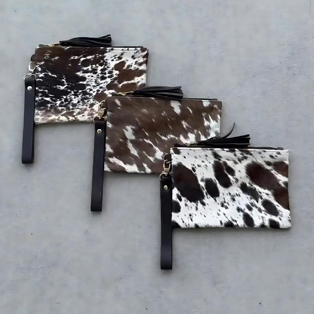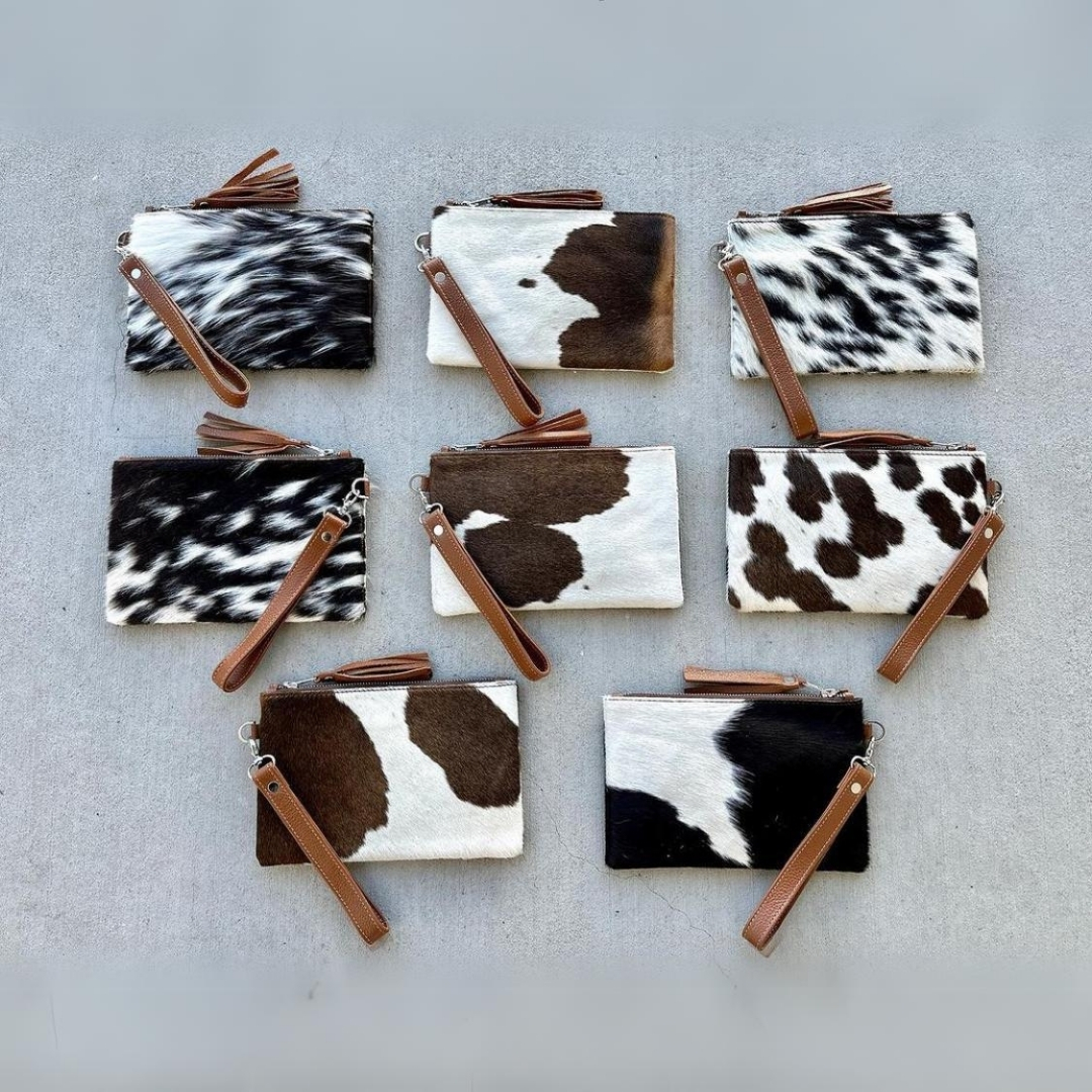 Introducing our exquisite Cowhide Handmade Clutches, starting at just $13 - $20. These clutches are the perfect blend of rustic charm and modern elegance, each one uniquely crafted to showcase the natural beauty of genuine cowhide.